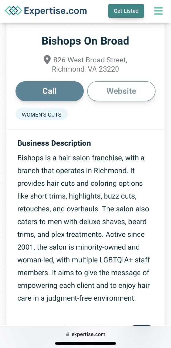 Expertise.com dubbed Bishops On Broad one of the best hair salons in Richmond.