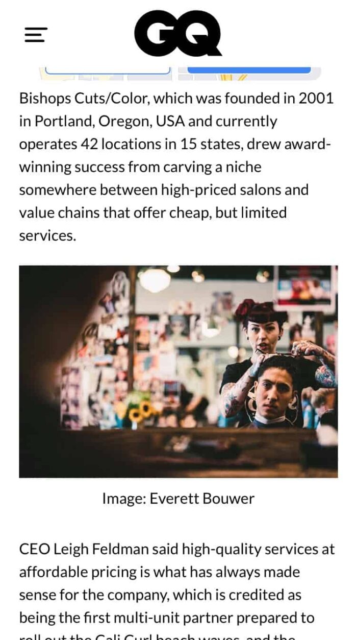 Bishops was recently featured in South America’s GQ article. We always aim for hosting a safe space for everyone, no matter your age, gender, or hair type.