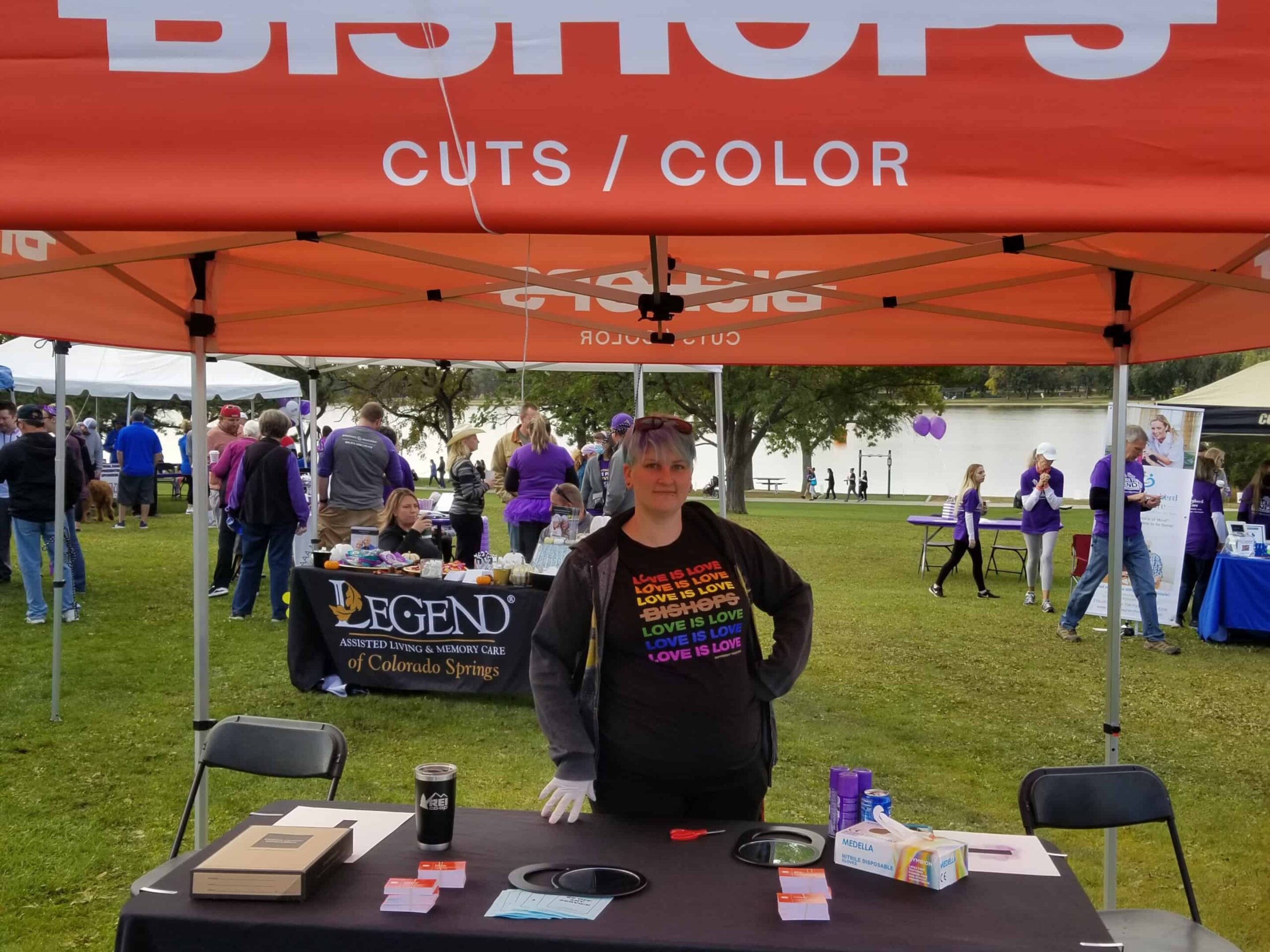 Each registered participant received a Promise Garden flower and items from sponsors, including Bishops Cuts/Color. The flowers represented someone’s connection to the disease: