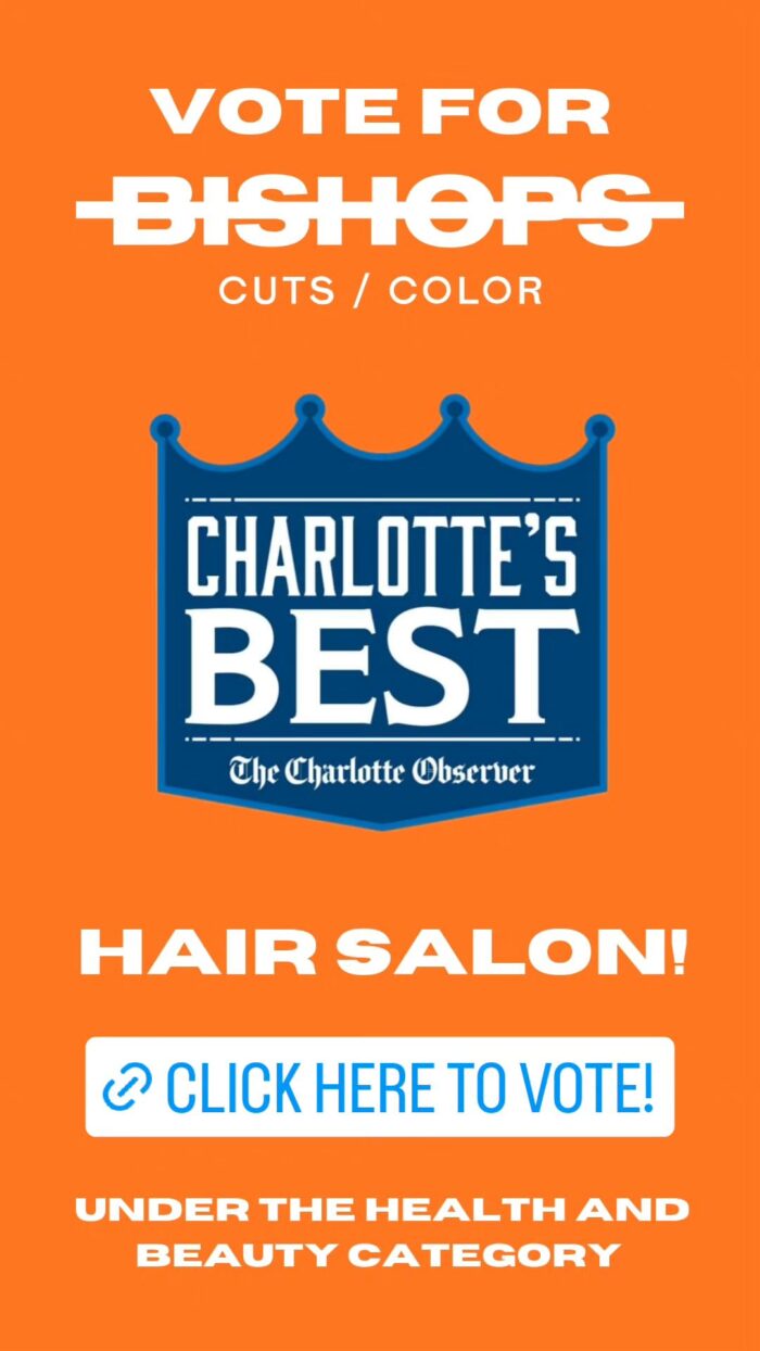 We kindly ask for your support in helping us secure the title of Best Hair Salon. Please visit the site and cast your vote here for Bishops Charlotte Midtown here. Scroll down to “Health & Beauty” and look for the “Hair Salon category. Together, we can celebrate this exciting milestone and continue to elevate the standard of hair care in Charlotte. Thank you for being part of our journey!