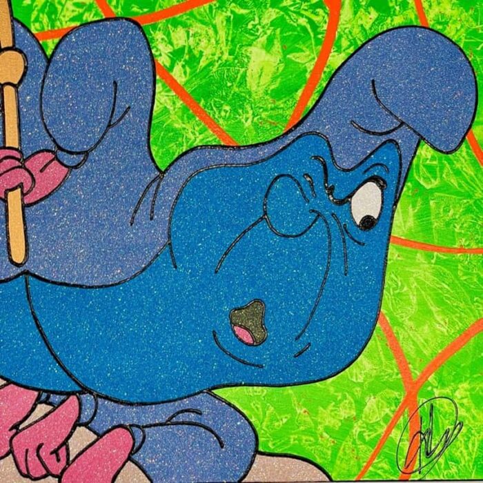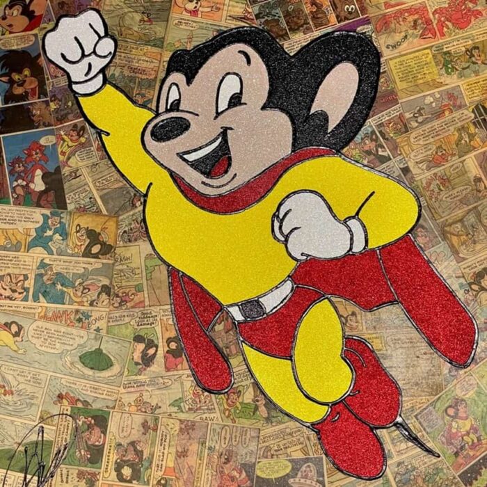 PJ (Patrick Joseph) Andrews’ artwork is a blend of contemporary and folk art with a splash of glitter for flair has been on display internationally in Belgium, France, Switzerland and domestically in Chicago, New York, San Francisco, West Hollywood and now on display at Bishops Cuts/Color in St Petersburg, FL. PJ’s animated work is in the styles influenced by Jackson Pollock and Andy Warhol. He is self-taught in the folk-art tradition and his “diamond dust” technique offers a new dimension within animation art. The use of glitter creates a three-dimensional affect where the characters seem to rise as light hits the canvas.