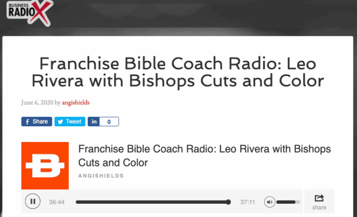 Business Radio X recently caught up with Leo Rivera, founder and CEO of Bishops, for the for their podcast Franchise Bible Coach Radio. The show, hosted by industry vets Rick Grossman and Rob Handley, has interviewees speak on the best practices and proprietary strategies that enable their personal successes in the franchising world. This episode delves into Leo’s initial vision for and the beginnings of Bishops, the current challenges of operating in the hair industry post-Covid 19 and the future franchise opening pipeline. The episode ends with Leo offering his “success nugget” (hiring the best possible manager you can) and observing a renewed optimism from many of the current Bishops franchisees as their shops gain exposure as essentials in their neighborhoods. Listen to the entire podcast here.