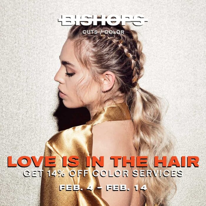 Just in time for Valentine’s Day our annual Love is in the Hair campaign is back! From February 4th through February 14th, participating shops will be offering 14% off color services for all new color clients to Bishops. Whether you’ve never had a color before or just need a refresh we’ve got you. Hair color encompasses so many different styles from a basic 1 process color to Balayage and Ombres and Color Melts. Our stylists engage in ongoing education and training provided by our partners from Wella and Wella Education. Want a vibrant color like green or even rainbow hair? Not a problem as all our shops use the well reknown Pulp Riot color line as well. Feel free to pre-book up to 7 days advance at your closest shop.