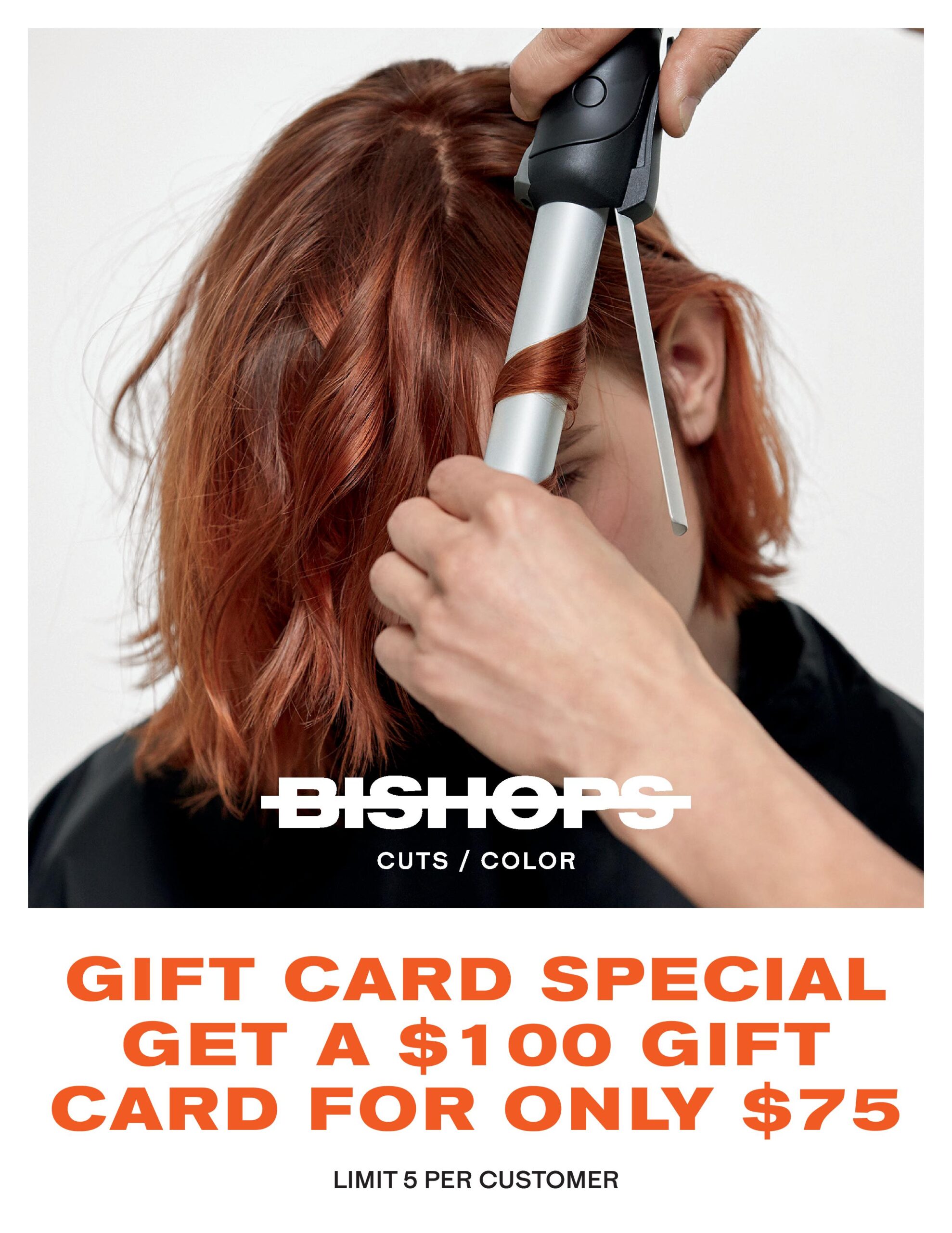 Our annual Bishops holiday gift card special is here again! Stop into any participating Bishops through 12.31.2019 to snag a $100 gift card for $75. Cards are valid for services only starting on 1.2.2020 and don’t expire! You can also purchase gift cards to send to friends and loved ones here.