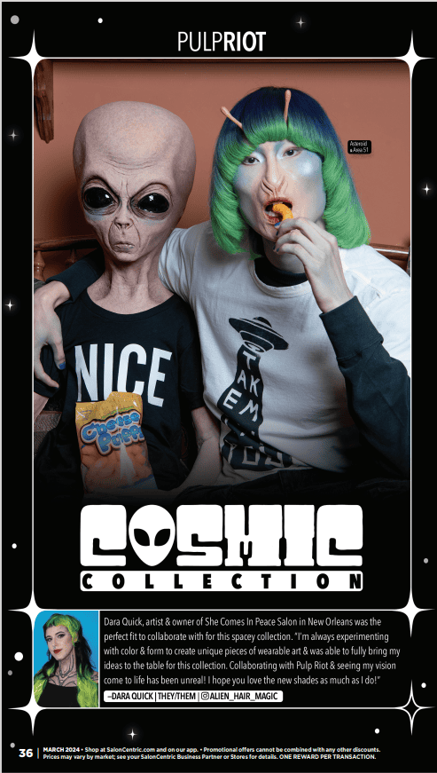 The three colors, Dark Matter, Asteroid, and Exoplanet are part of the new Cosmic Collection line. The futuristic and otherwordly line was created in partnership with Dara Quick, owner of She Comes in Peace Salon in New Orleans.