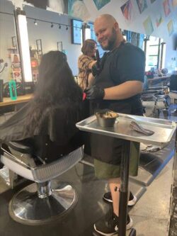Today, we’re checking in with shop manager Harry J. Clark, the first in a series of interviews with some of our longest-tenured employees. Harry has been with Bishops Chamblee since the shop first opened in 2018. He brings a wealth of knowledge as an experienced colorist equally adept at working with traditional hair color from Wella and fashion colors from Pulp Riot, in addition to mentoring the staff at the shop.