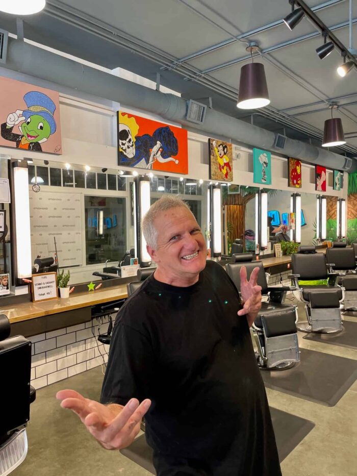 PJ (Patrick Joseph) Andrews’ artwork is a blend of contemporary and folk art with a splash of glitter for flair has been on display internationally in Belgium, France, Switzerland and domestically in Chicago, New York, San Francisco, West Hollywood and now on display at Bishops Cuts/Color in St Petersburg, FL. PJ’s animated work is in the styles influenced by Jackson Pollock and Andy Warhol. He is self-taught in the folk-art tradition and his “diamond dust” technique offers a new dimension within animation art. The use of glitter creates a three-dimensional affect where the characters seem to rise as light hits the canvas.