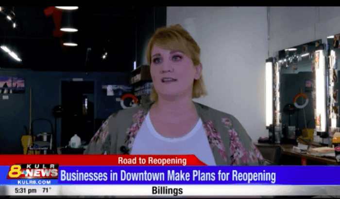 Billings NBC affiliate KULR8 recently stopped into Bishops Billings Downtown to interview shop manager Katryna Erb regarding the salon’s re-opening plans. Katryna outlined the numerous enhanced safety precautions that the shop will be doing until a return to life pre-Covid19. Re-organizing the shop with out a waiting room, staggering the staff’s work schedule and minimizing client capacity are just a few of the steps that will be taken with an abundance of caution. The original interview aired April 21st with the shop having since re-opened. Watch the full interview here.