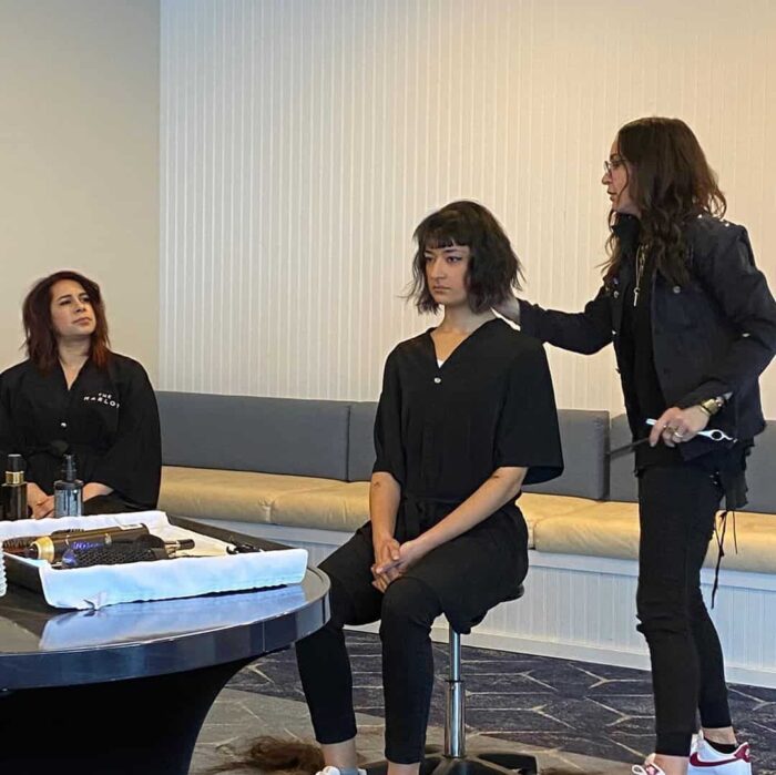 Bishops Portland and Seattle recently welcomed renowned celebrity stylist Marylle Koken for a series of continuing education classes. Since 1997, Marylle has been involved with Sebastian Professional, first on their internal team and eventually rising to an Artistic Director role. She is also the owner of the acclaimed Harlot Salon in Los Angeles with a celebrity clientele including Jack Osbourne, Kimberly Stewart, Paris Hilton, Morrissey, Nine Inch Nails and most recently The Kardashians. In her classes, Taking Pride in Your Craft, Maryelle focuses on showing how to create movement in hair through dry cutting techniques.