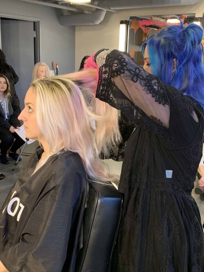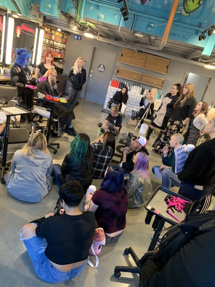 Bishops was delighted to welcome back renowned Pulp Riot color educator Kaseyoh (also known as Kasey Ohara Skrobe). Bishops San Jose Downtown hosted the color class January 13th with other area Bishops: Campbell, Cupertino, Sunnyvale, Santa Clara and Pleasanton also joining in the fun “Look & Learn” training session. Kasey’s specialty is of course Rainbow hair which she also covered in her last classes at the Bishops Education center.