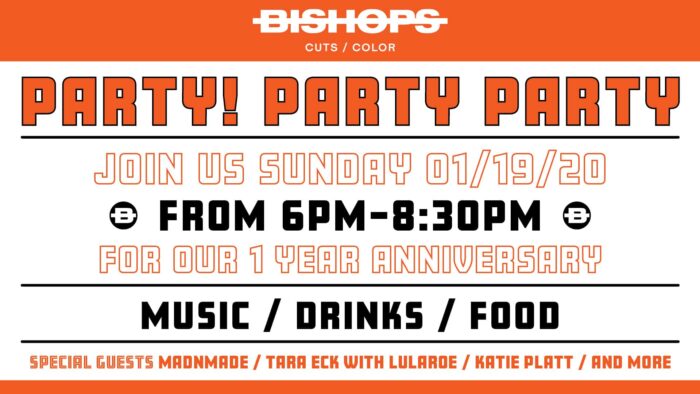 Bishops Minneapolis Uptown is gearing up for their 1 year anniversary on Sunday 1/19/2020. Join the crew from 6pm – 8:30pm for live music, free drinks and food! Local fashion notables Madnmade and Tara Eck with Lulade will be on hand showing some examples from their collections. Additionally, Katie Platt will be showing some art pieces as well.