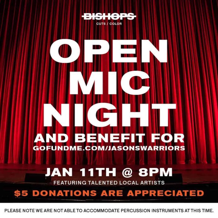 Join Bishops Denville on January 11th for an open mic night benefit for friends of the shop, The Kosco family.