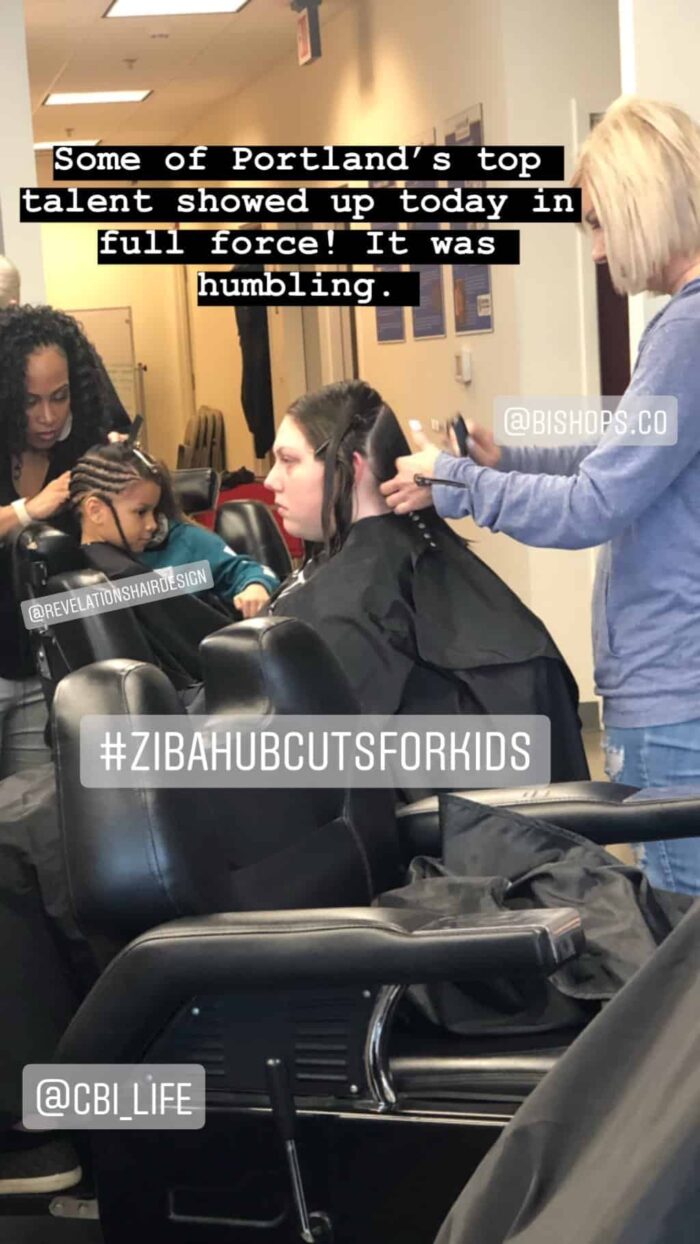 Bishops Portland recently helped out on the Holiday Kids Cut campaign put on by Zibahub. Zibahub, an app and blogsite launched earlier this year, focuses on career networking, tips & tricks for beauty professionals in Oregon and Washington. The event was held at Champions Barbering Institute (aka CBI) on December 15th and satisfied the needs of underpriveleged families seeking hair services. CBI is one of the premier barbering schools in Portland. Bishops was able to send shop managers Ryan Hildreth and Rachel Ladd along with stylist Kierra Mathis to provide haircuts during the event.
