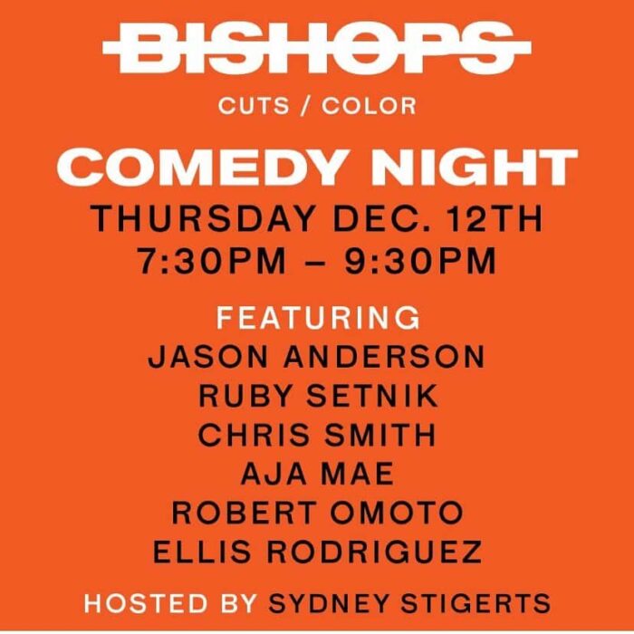 Bishops Sacramento Midtown is pleased to be hosting an in-store comedy night on Thursday September 12th 7:30pm to 9:30pm. The event will be hosted by local comedian Syndey Stigerts who is also a barber at the shop. Other local comics appearing will be Jason Anderson, Ruby Setnik, Chris Smith, Aja Mae, Robert Omoto and Ellis Rodriguez. Admission to the event is free and the shop will also be providing complimentary beverages.