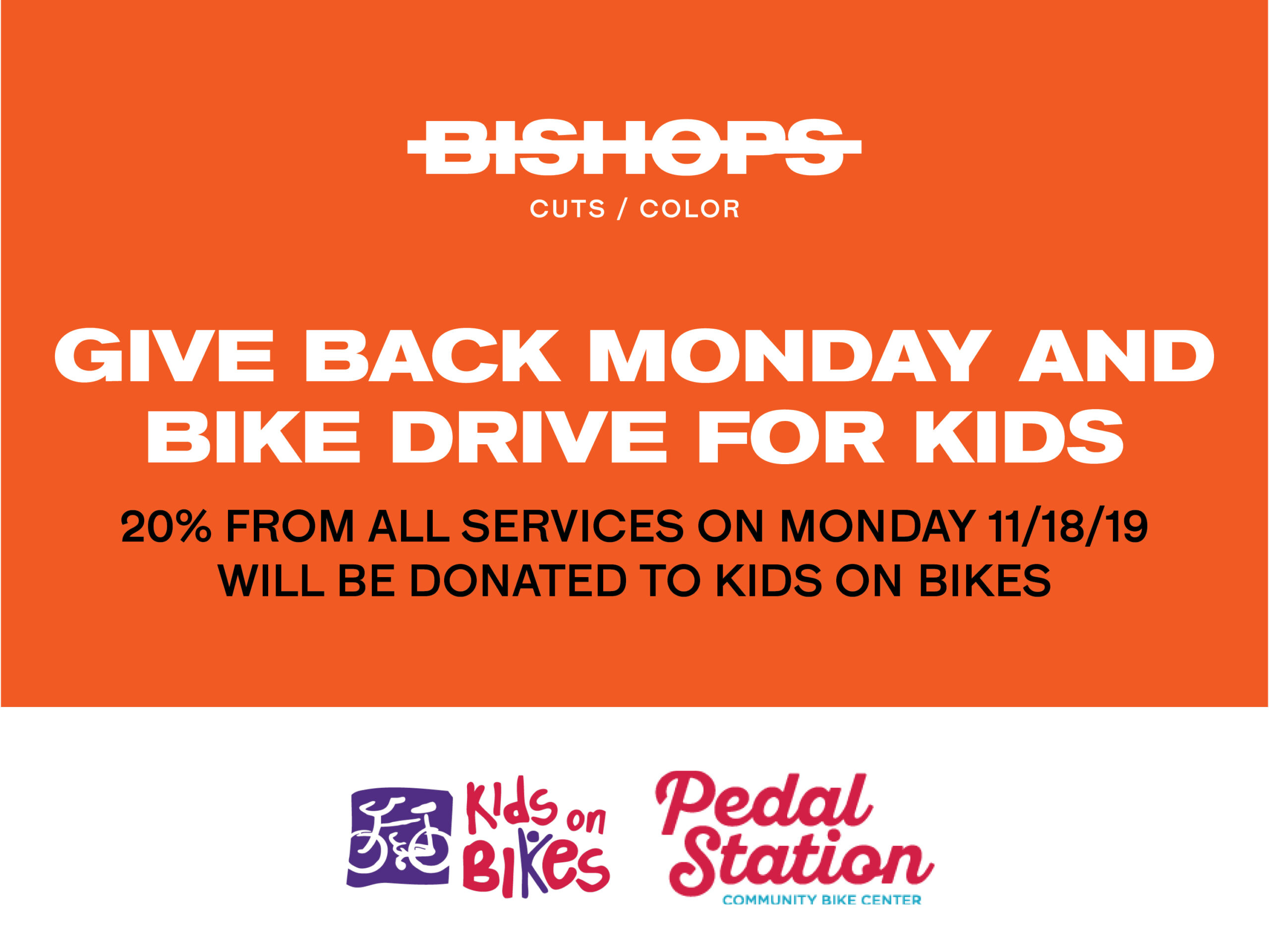 Bishops North Academy has partnered up with Kids on Bikes for a fundraiser on November 18th. For this coming edition of Bishops’ “Give Back Monday“, the shop will be donating 20% from all services to to help raise the importance of youth bike awareness. Additionally, the shop will serve as a bike donation satellite for Kids on Bikes for the day.